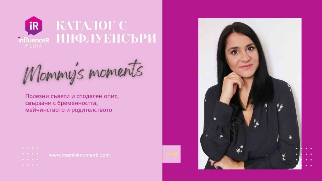 Име: Божидара Димитрова Instagram профил: maminimomenti_mommysmomets Facebook профил: Мамини моменти YouTube профил: Мамини моменти Основни теми в комуникацията: Полезни съвети и споделен опит, свързани с бременността, майчинството и родителството Брой последователи в Instagram: 6924 Брой последователи във Facebook: 55 733 Брой последователи във YouTube: 1958 Блог: www.maminimomenti.com Гордост: Изпълнявам задачите си в срок и с…