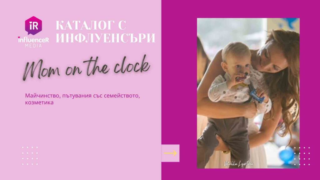 Име: Неда Бресковска-Милушева Instagram профил: mom.on.the.clock Основни теми в комуникацията: Майчинство, пътувания със семейството, козметика, показване на ежедневието на една доста работеща майка Брой последователи в Instagram: 1500 Гордост: Честна съм, оригинална и винаги отделям доста време да измисля история и смисъл в това, което представям/рекламирам. Бизнеси, които предпочита: Брандове за детски стоки, козметика,…