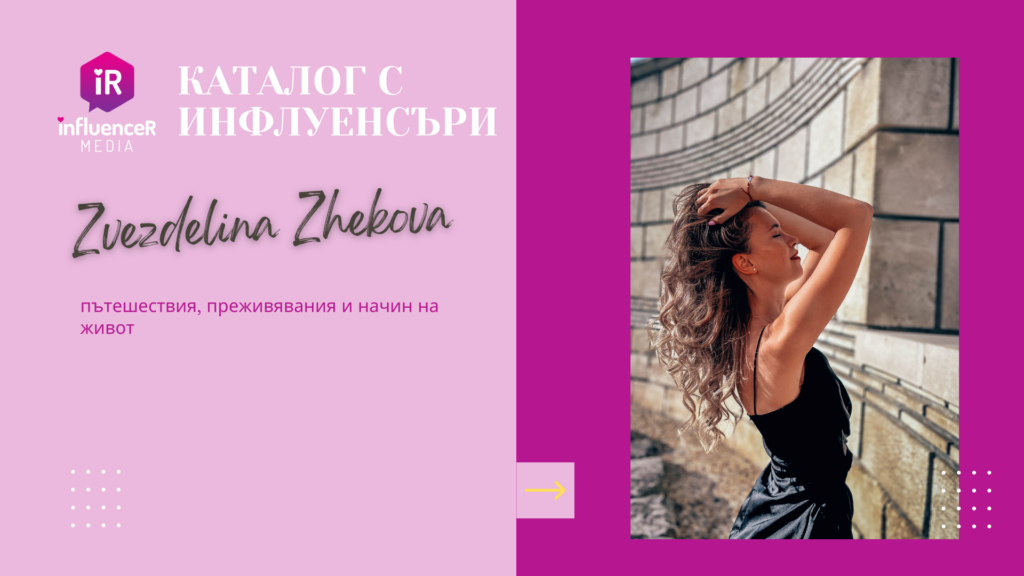 Име: Звезделина Жекова Instagram профил: zvezdizhekova Основни теми в комуникацията: пътешествия, преживявания и начин на живот Брой последователи в Instagram: 4522 С какво се гордееш в работата ти с брандове: Подбирам брандовете, с които работя. Гордея се с това, че наистина споделям за брандове, които харесвам, и не подвеждам последователите си с поднесената информация. С какъв…