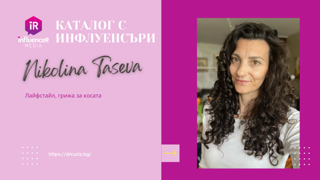 Име – Николина Тасева – Dr.CurlsYoutube – drcurlsbg Instagram – drcurlsbg TikTok – drcurlsbg Facebook – drcurlsbg Основни теми в комуникацията: Всичко за красивата коса и къдрици – грижа за косата, техники и стилизиране на къдрава коса, видеа, ръководства, съвети, консултации, продукти за къдрава коса.Лайфстайл на една къдрокоска, забавни клипчета за къдрокоски. Брой последователи в…