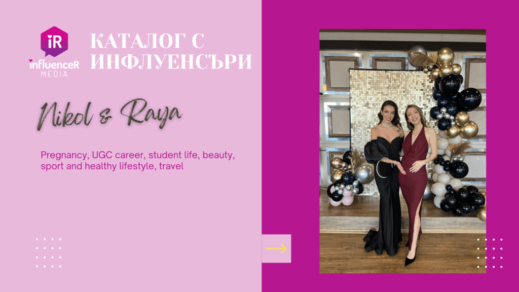 Добавете нещо, което ви е важно, но го няма в списъка горе: Ние сме две сестри- аз, Никол- на 26 год, бременна съм в 6 месец, а сестра ми- Рая е на 19г. и тази година ще бъде студент в София. Аз работя в маркетинг сектора от вече над 5 години, като към момента съм Digital Marketing Manager в една от най-бързо развиващите се българския компании. Това ми позволява да разбирам напълно и двете страни (гледни точки) – тази на бранда и тази на криейътра/инфлуенсъра, което досега много пъти ми е помагало в комуникацията. Рая, от своя страна, има друг много по-различен прочит, дава нови перспективи, идеи, свежият й, необременен ум винаги измисля супер креативни неща и е много на ТИ с едитването и готините ефекти по видеата. Двете в комбина се оказа печеливша стратегия за нашето хоби/професия.