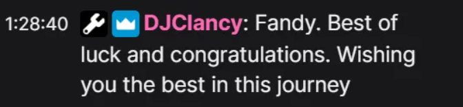 Най-изненадващият момент настъпи, когато главният изпълнителен директор на Twitch, Дан Кланси, се появи в чата на живо. Той поздрави Fandy с думите:
