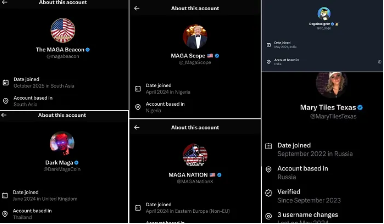 - Акаунти с про-MAGA, консервативни или политически остри мнения всъщност се управляват от Нигерия, източна Европа, Южна Азия или други региони.